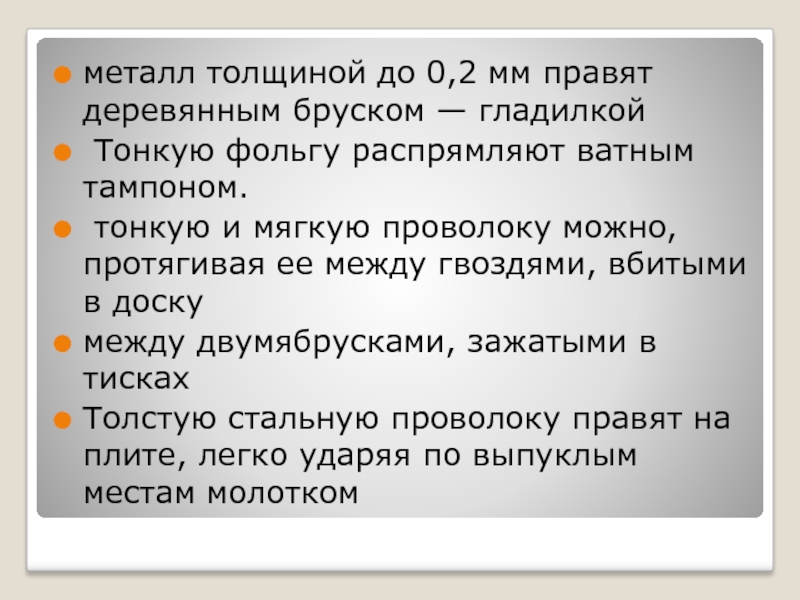 металл толщиной до 0,2 мм правят деревянным бруском — гладилкой