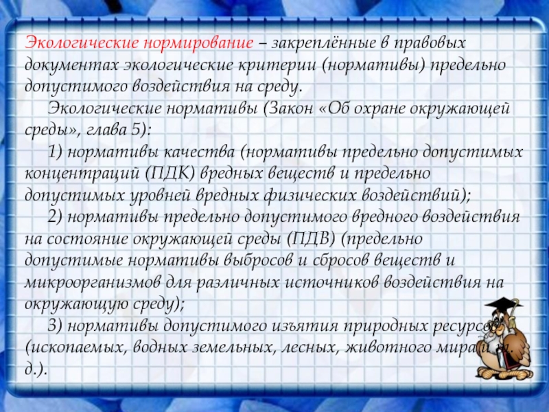 Благоприятная окружающая среда – среда, качество которой обеспечивает устойчивое функционирование естественных экологических систем, природных и природно-антропогенных объектов.