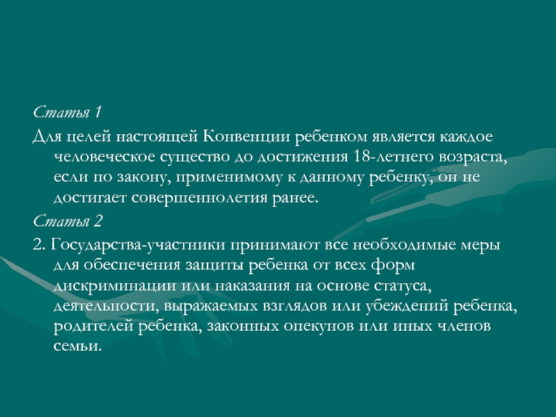 Для целей настоящей Конвенции ребенком является каждое человеческое существо