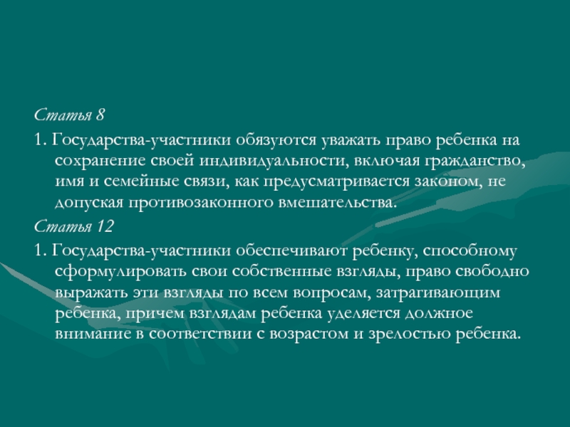1. Государства-участники обязуются уважать право ребенка на сохранение своей