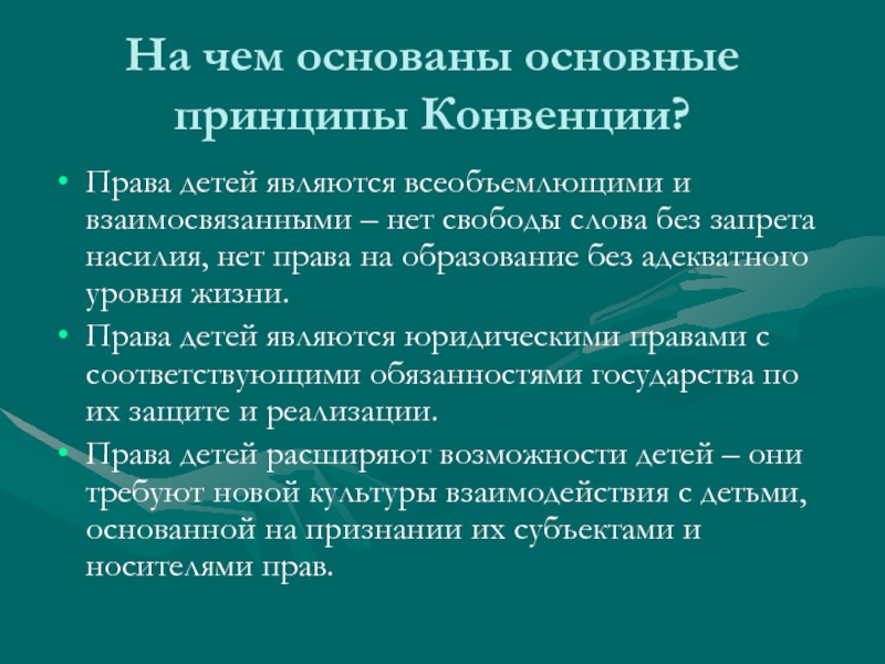 Слайд 9На чем основаны основные принципы Конвенции?