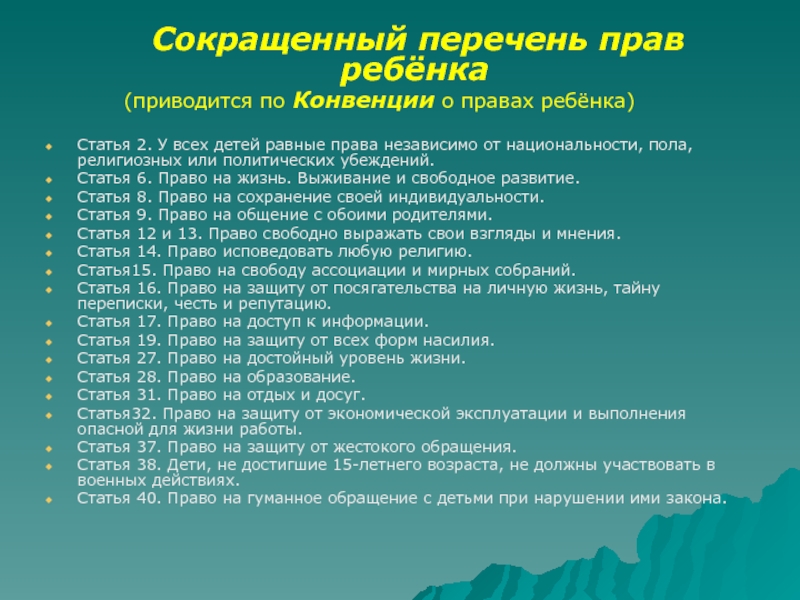Статья 2. У всех детей равные права независимо от национальности, пола, религиозных или политических убеждений.
