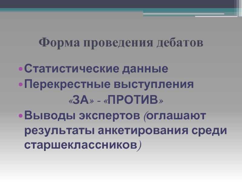 Выводы экспертов (оглашают результаты анкетирования среди старшеклассников)