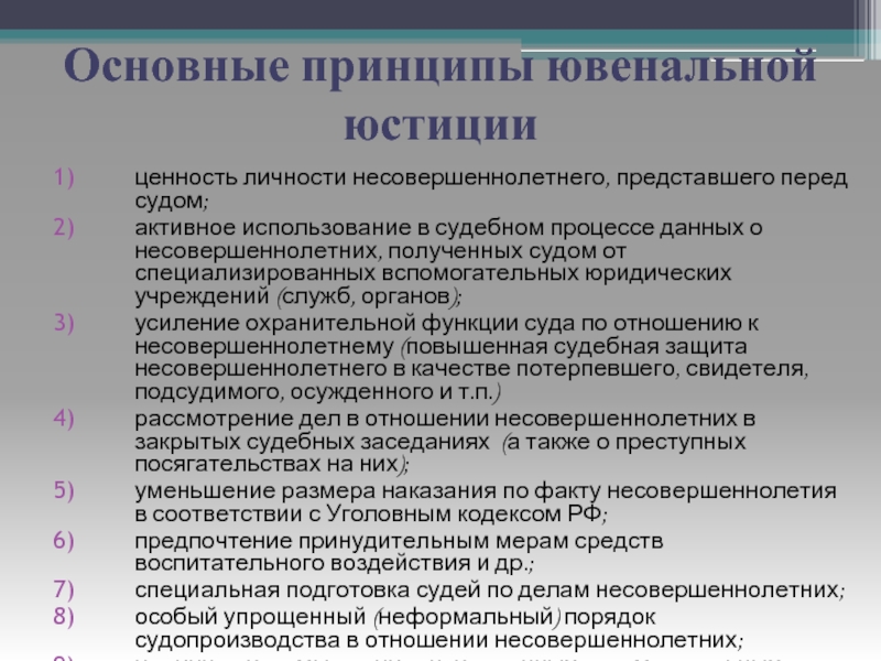 предпочтение принудительным мерам средств воспитательного воздействия и др.;
