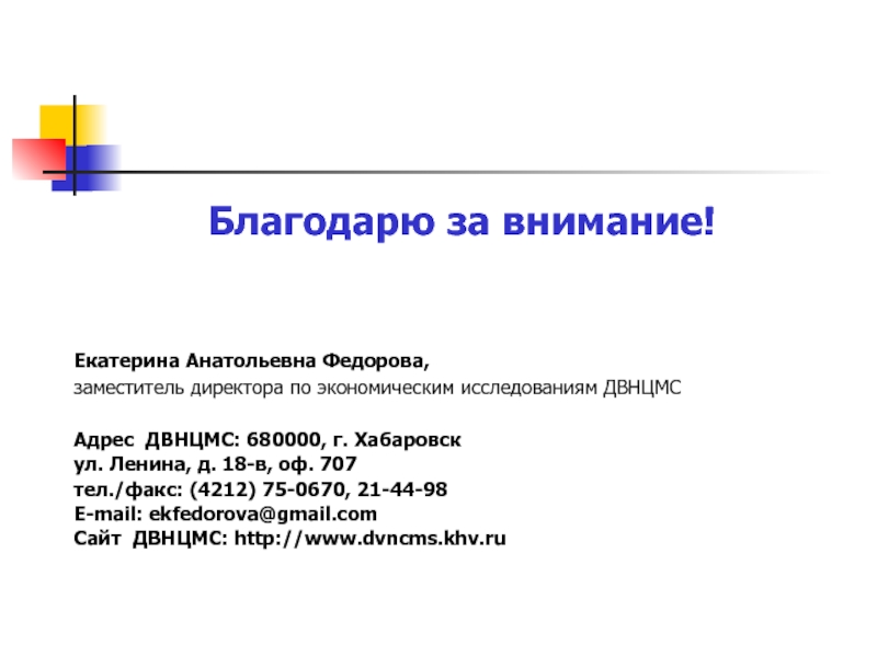 заместитель директора по экономическим исследованиям ДВНЦМС