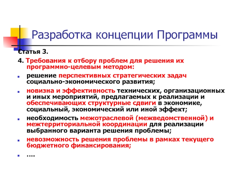 2. Первым шагом в подготовке МЦП должна являться разработка Концепции программы, которая должна проходить экспертизу, обсуждаться и утверждаться. Только после утверждения Концепции и на её основе должен разрабатываться текст Программы.
