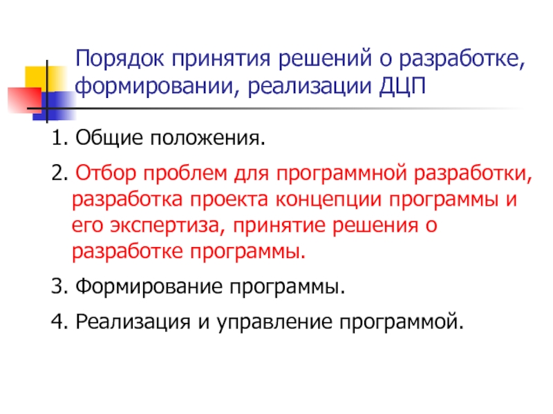 Слайд 18Порядок принятия решений о разработке, формировании, реализации ДЦП