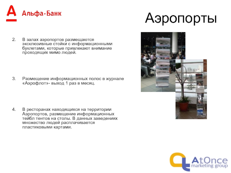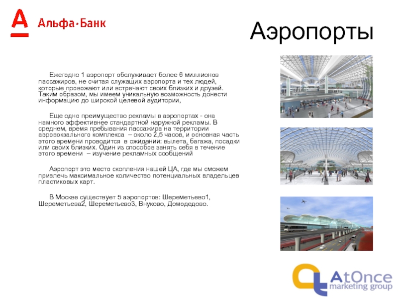 Аэропорт это место скопления нашей ЦА, где мы сможем привлечь максимальное количество потенциальных владельцев пластиковых карт.