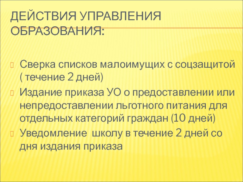 приказа УО о предоставлении или непредоставлении льготного питания для отдельных категорий граждан (10 дней)