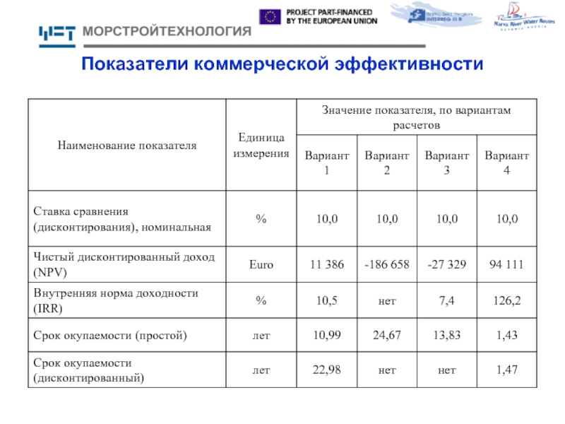 Вариант 4 аналогичен Варианту 3, но в данном случае не рассматривалась текущая деятельность яхтенной стоянки, предусмотрено инвестирование в гидротехнические сооружения и работы, доходом инвестора в данном случае является получение прибыли от сдачи стояночных мест для яхт в долгосрочную аренду (продажу на 49 лет).