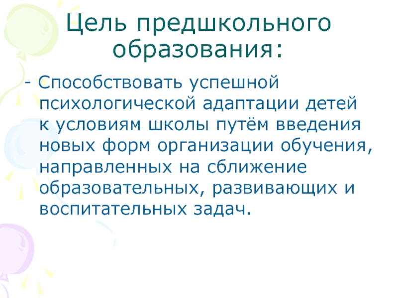 - Способствовать успешной психологической адаптации детей к условиям школы