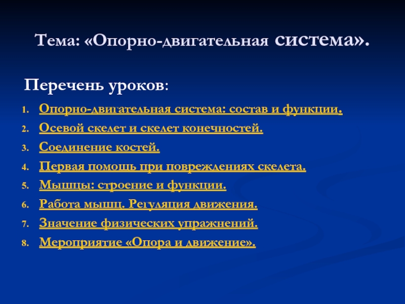 Презентация темы состоит из семи уроков и обобщающего тему мероприятия.