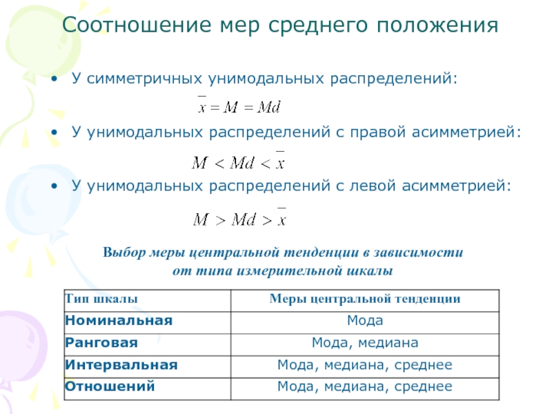 Соотношение мер среднего положения