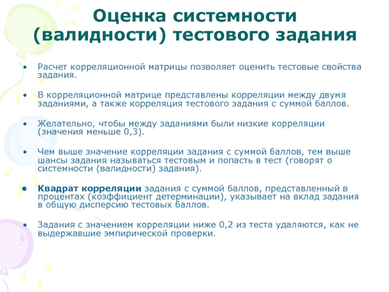 – дисперсия тестового балла.