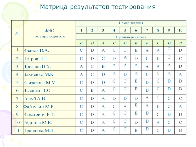 n – количество тестируемых; p – количество заданий;