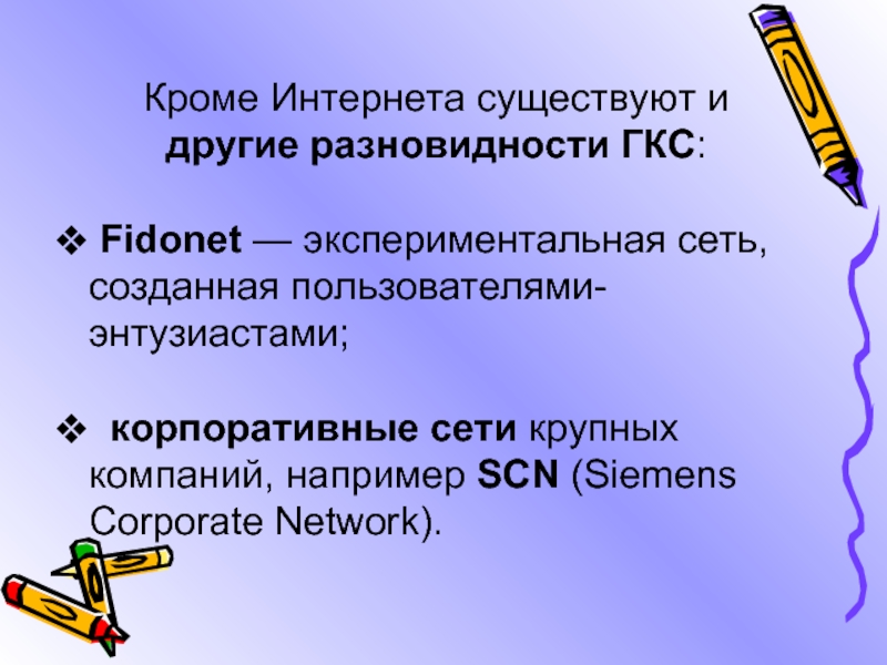 Слайд 28Кроме Интернета существуют и другие разновидности ГКС:
