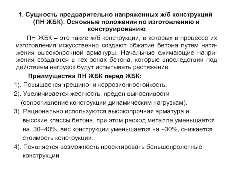 Слайд 31. Сущность предварительно напряженных ж/б конструкций (ПН ЖБК). Основные положения по