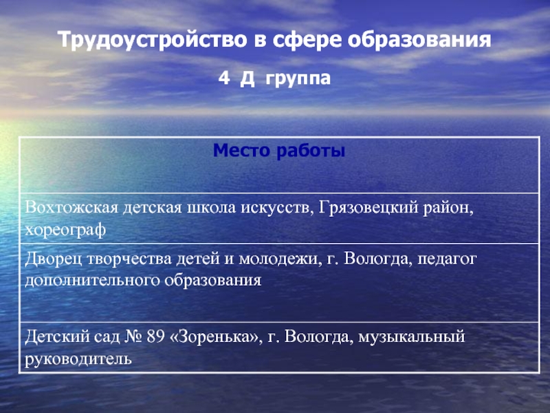 Трудоустроены в сфере образования – 12 чел. (город – 7 чел., район – 5 чел.)