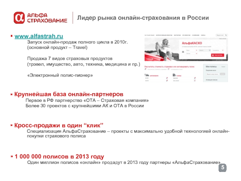 Один миллион полисов «онлайн» продадут в 2013 году партнеры «АльфаСтрахование»