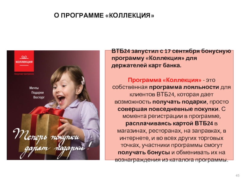 В Программе участвуют дебетовые, зарплатные и кредитные карты ВТБ24.