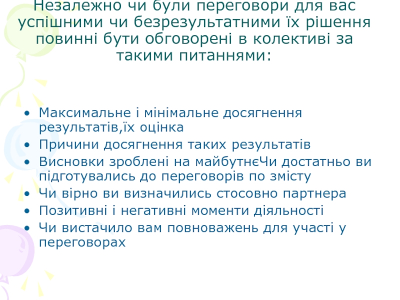 Слайд 26Незалежно чи були переговори для вас успішними чи безрезультатними їх рішення