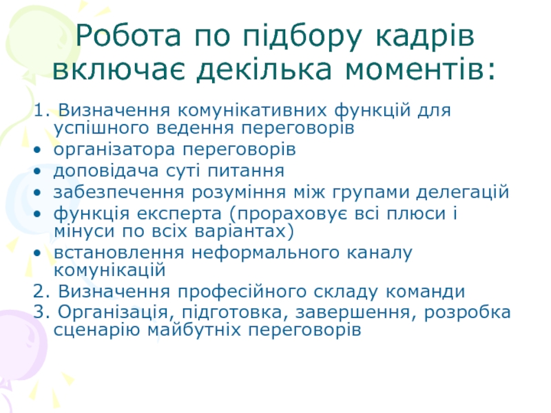 Слайд 13Робота по підбору кадрів включає декілька моментів: