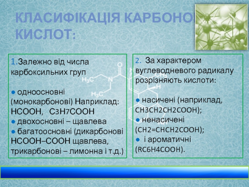 КЛАСИФІКАЦІЯ КАРБОНОВИХ КИСЛОТ: