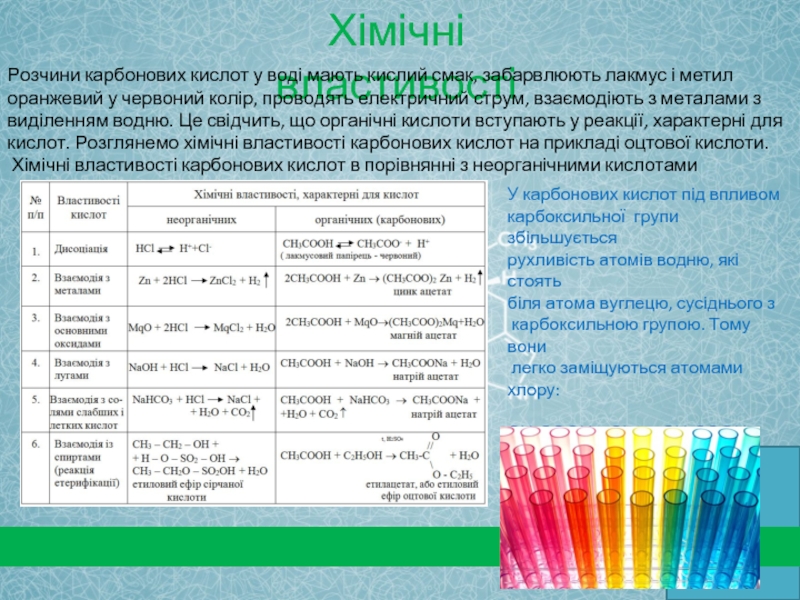 Їх добра розчинність і високі температури кипіння пояснюються утворенням більшого числа водневих зв′язків між молекулами кислот.