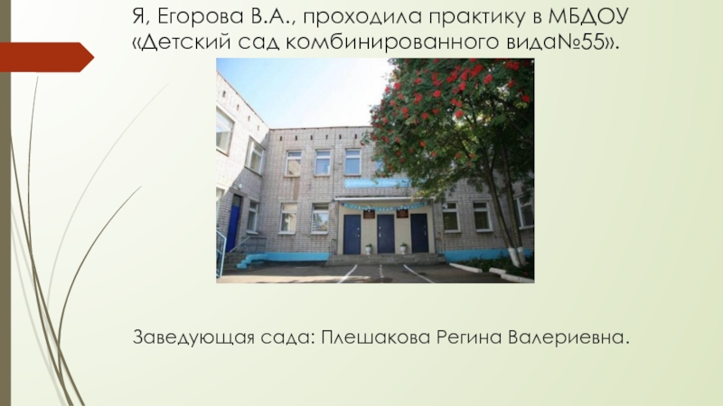 Слайд 2Я, Егорова В.А., проходила практику в МБДОУ «Детский сад комбинированного вида№55».