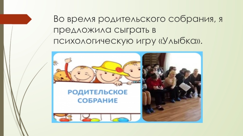 Слайд 10Во время родительского собрания, я предложила сыграть в психологическую игру «Улыбка».