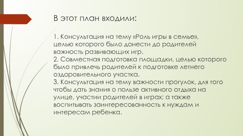 3. Консультация на тему важности прогулок, для того чтобы дать знания о пользе активного отдыха на улице, участии родителей в играх; а также воспитывать заинтересованность к нуждам и интересам ребенка.