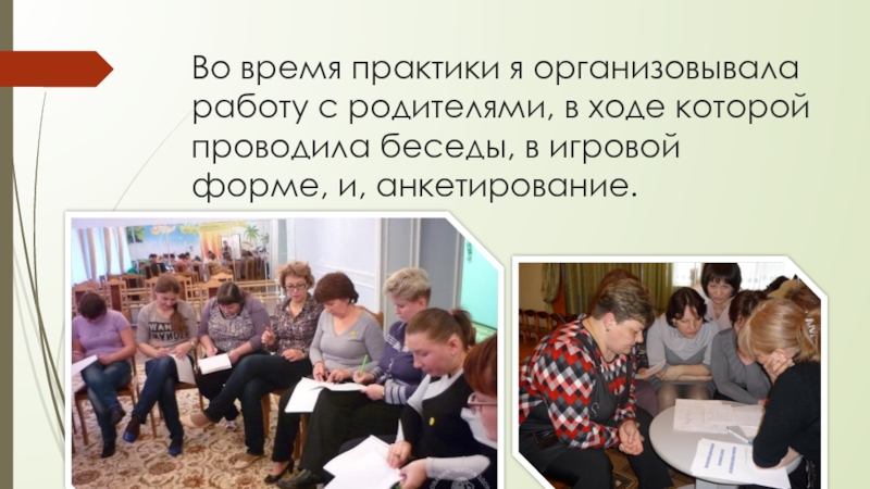 Слайд 9Во время практики я организовывала работу с родителями, в ходе которой