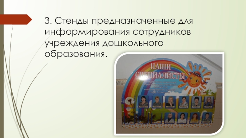 3. Стенды предназначенные для информирования сотрудников учреждения дошкольного образования.