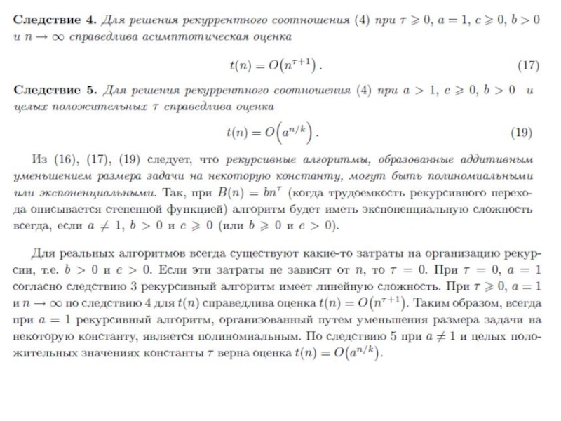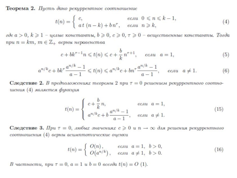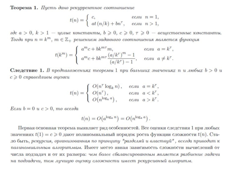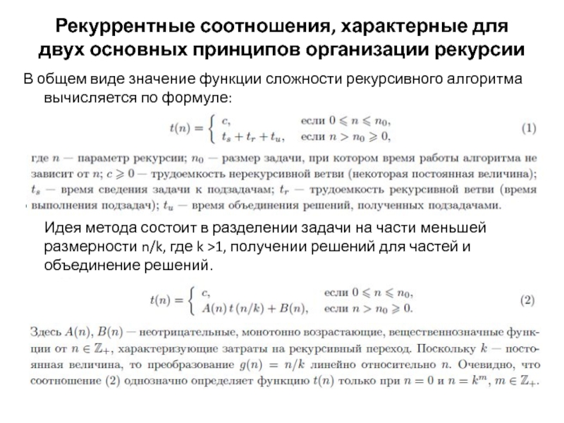 Слайд 2Рекуррентные соотношения, характерные для двух основных принципов организации рекурсии