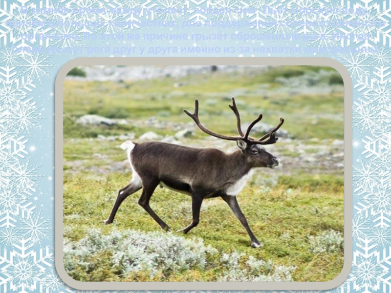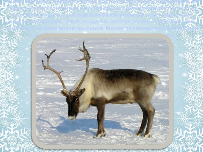 Слайд 17Рацион питания северного оленя состоит в основном из растений. На первом