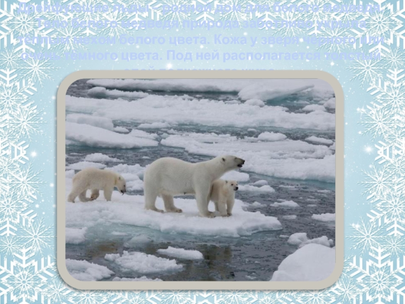Слайд 6Дрейфующие льды – родной дом для белого медведя. Тело белого медведя