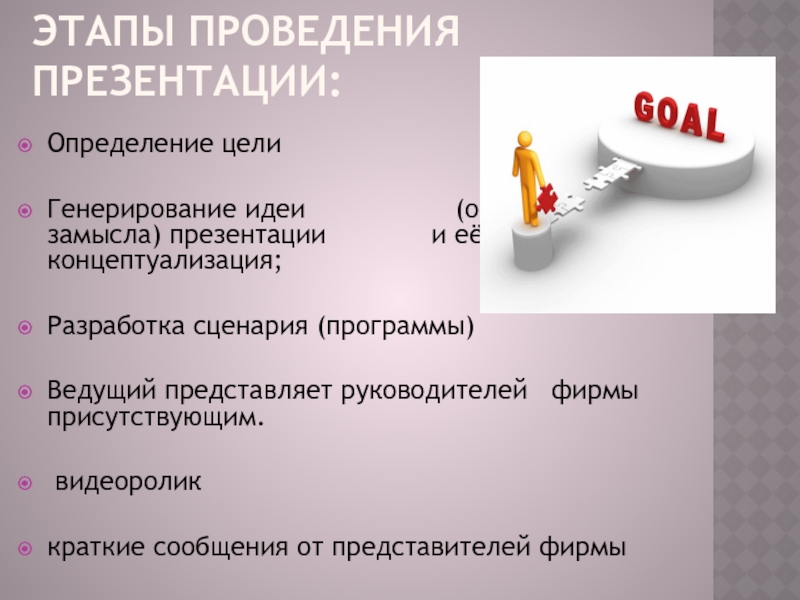 Слайд 4ЭТАПЫ ПРОВЕДЕНИЯ ПРЕЗЕНТАЦИИ: