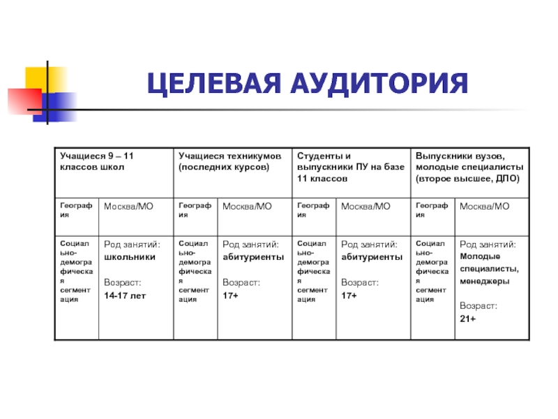 Возможность целенаправленного воздействия на сегмент активных потребителей в возрасте 17-35 лет