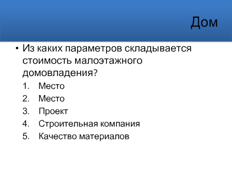 Из каких параметров складывается стоимость малоэтажного домовладения?