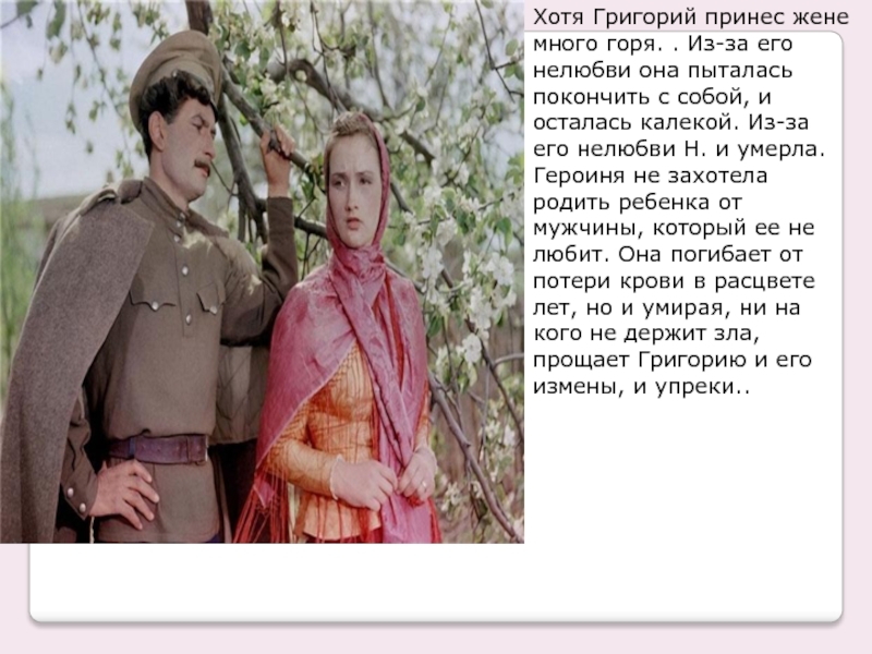 Слайд 7Хотя Григорий принес жене много горя. . Из-за его нелюбви она