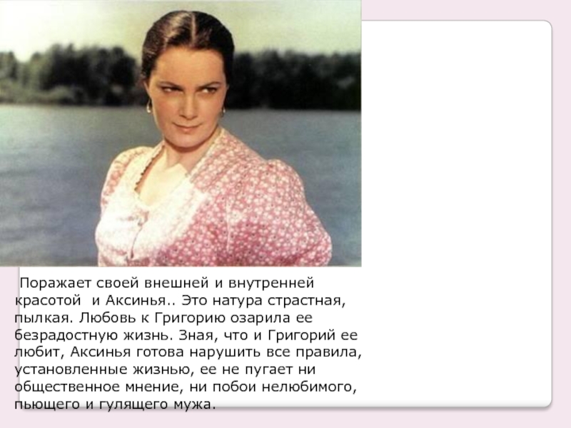 Слайд 9 Поражает своей внешней и внутренней красотой и Аксинья.. Это натура