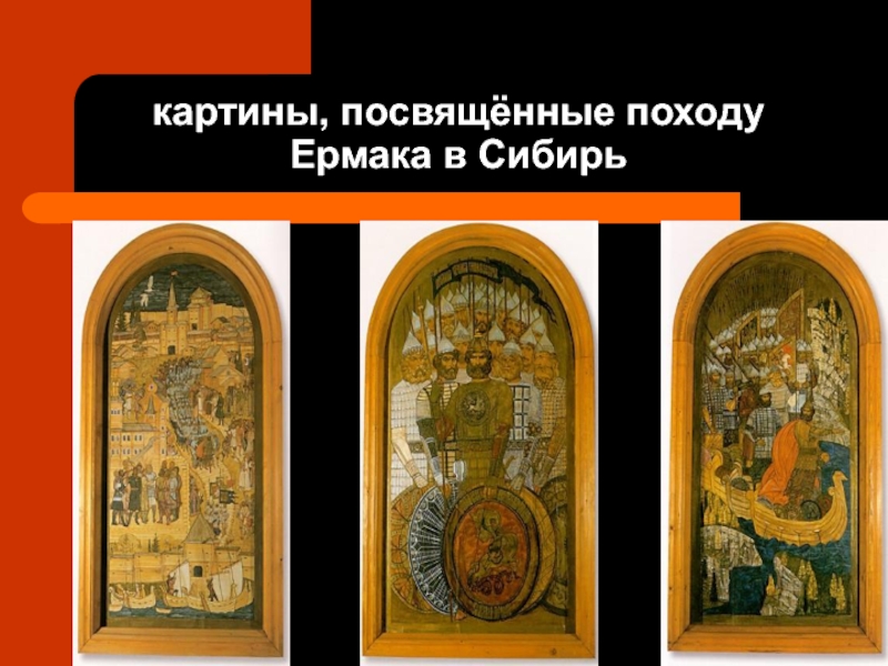 Слайд 11картины, посвящённые походу Ермака в Сибирь