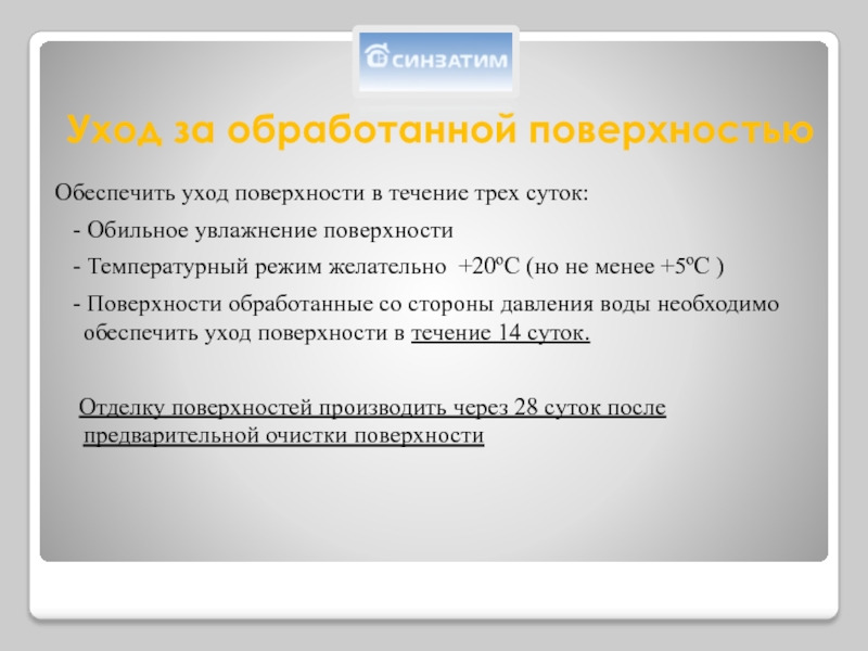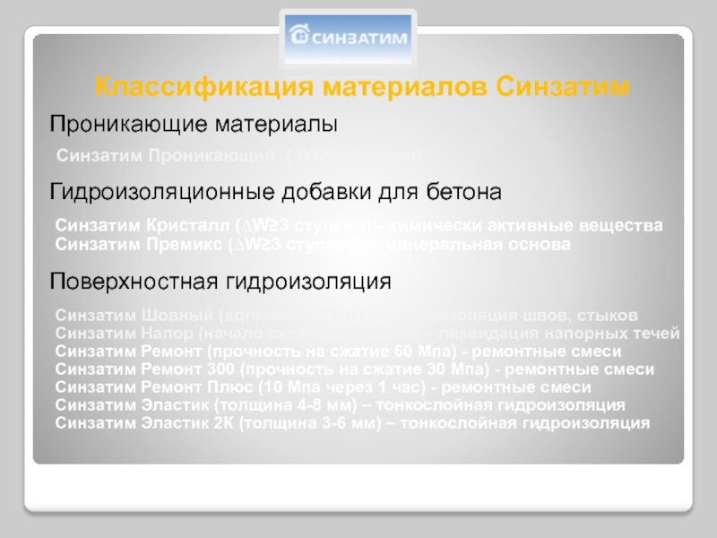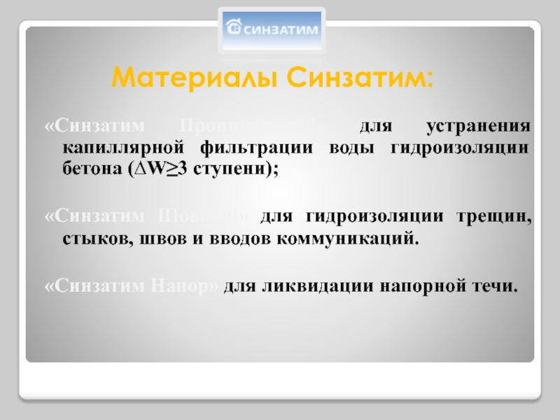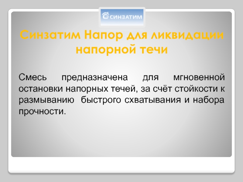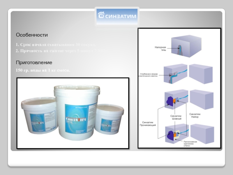 Синзатим Напор (начало схватывая 30 сек) – ликвидация напорных течей