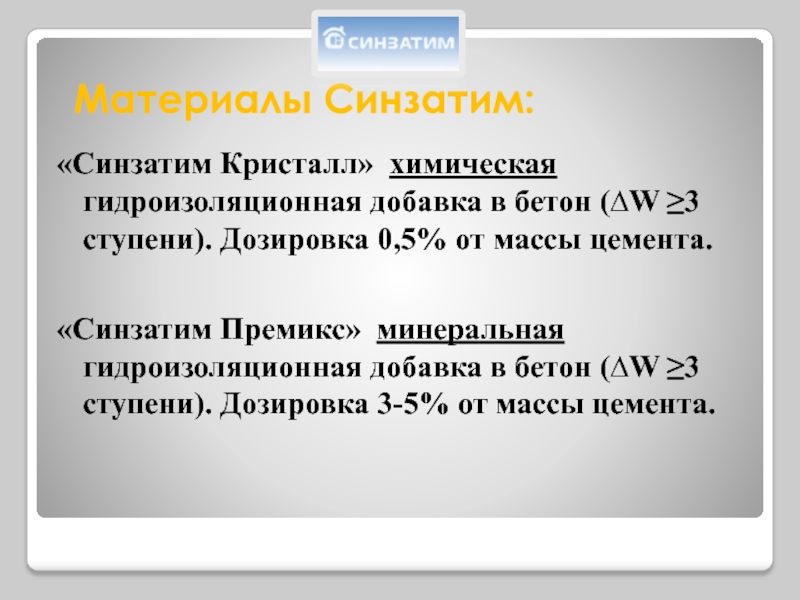 Переход на материалы Синзатим
