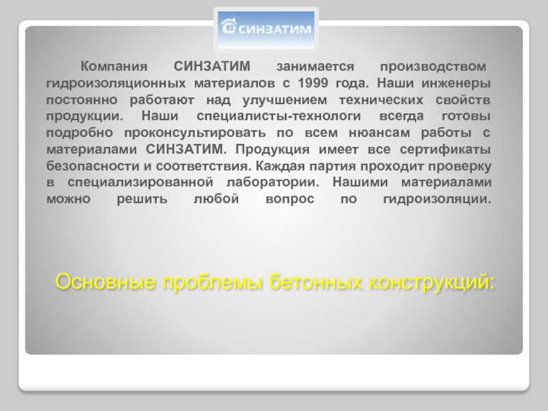 Основные проблемы бетонных конструкций: