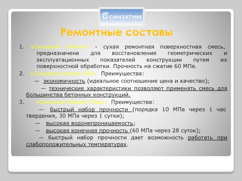 Синзатим Ремонт Плюс (10 Мпа через 1 час) - ремонтные смеси