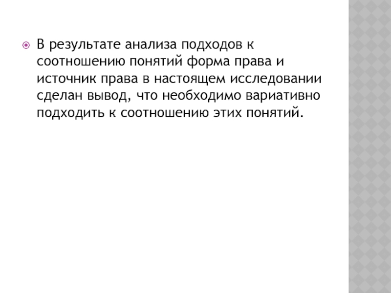 Слайд 6В результате анализа подходов к соотношению понятий форма права и источник
