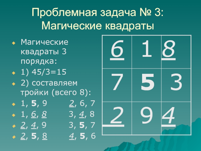 Слайд 13Проблемная задача № 3: Магические квадраты