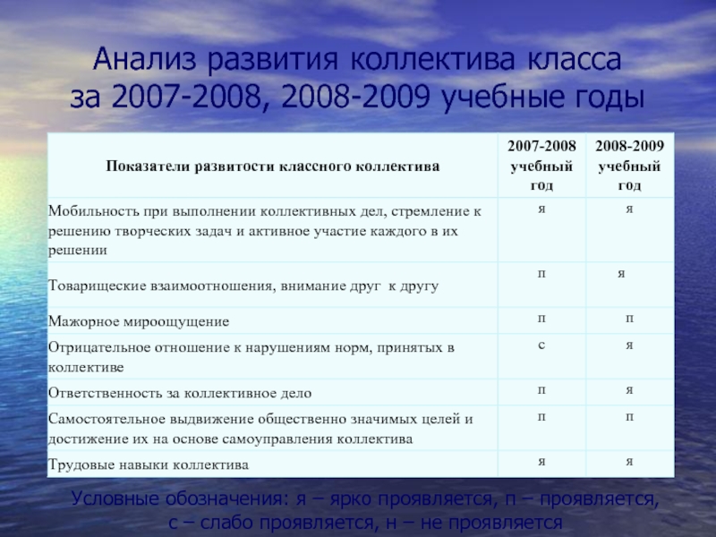 Слайд 9Анализ развития коллектива класса за 2007-2008, 2008-2009 учебные годы