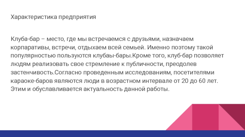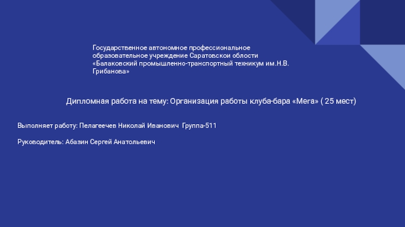 Дипломная работа на тему: Организация работы клуба-бара «Мега» ( 25 мест)